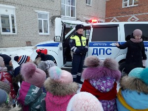 21 декабря 2022 г.в МБДОУ № 3 сотрудники ОГИБДД по городу Сухой Лог познакомили ребят с профессией инспектора ГИБДД. Инспектор по пропаганде Смирнова Татьяна Николаевна и инспектор ГИБДД Скопин Владислав Анатольевич рассказали детям о службе ГИБДД, познакомили с патрульной машиной. Ребятишки попробовали себя в роли сотрудника: посидели в машине, померяли каску. Встреча была очень продуктивной.